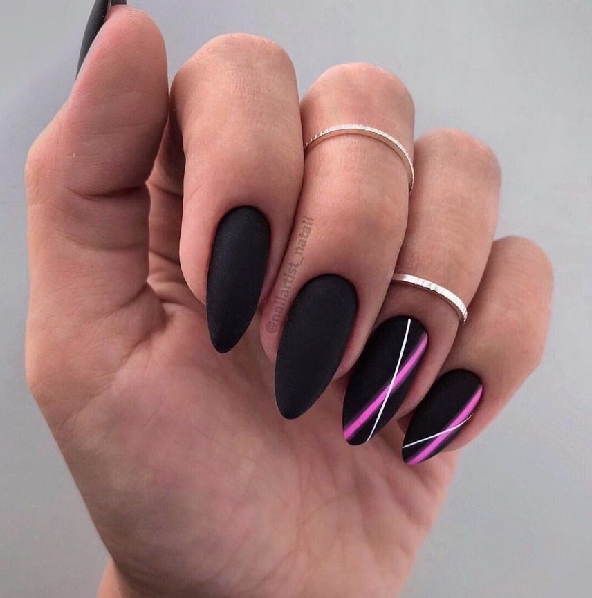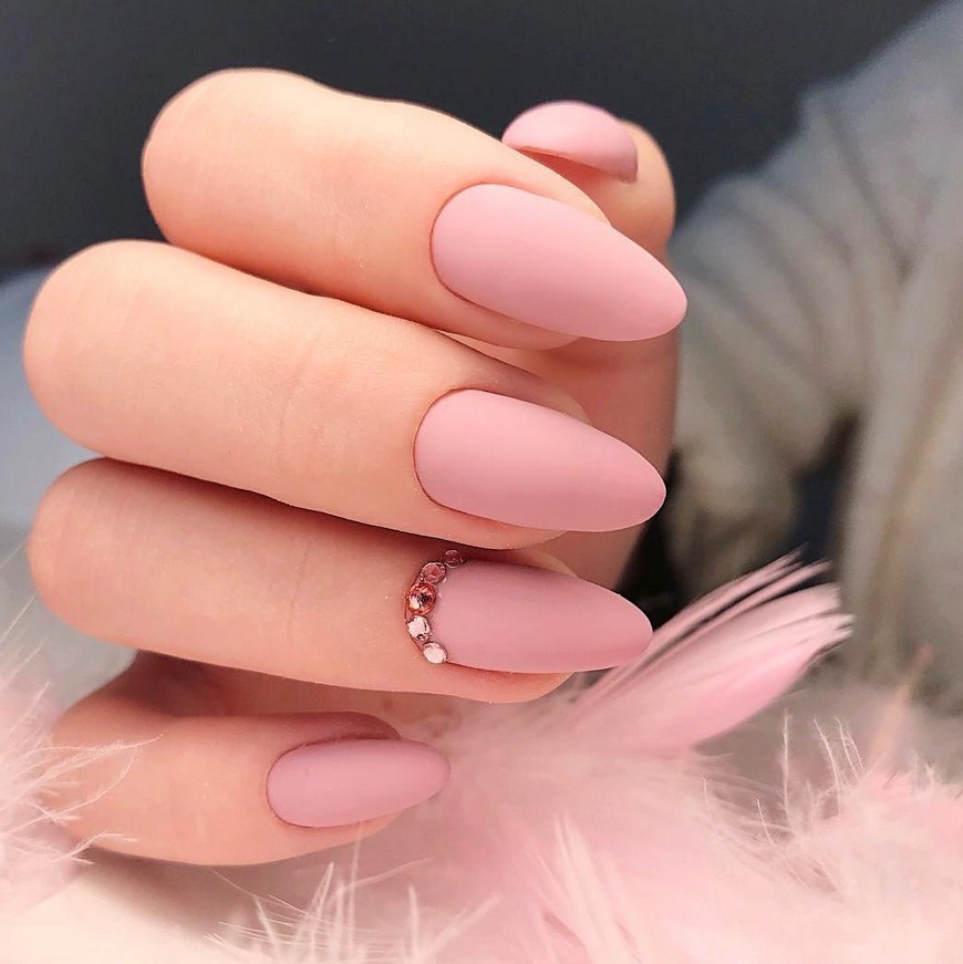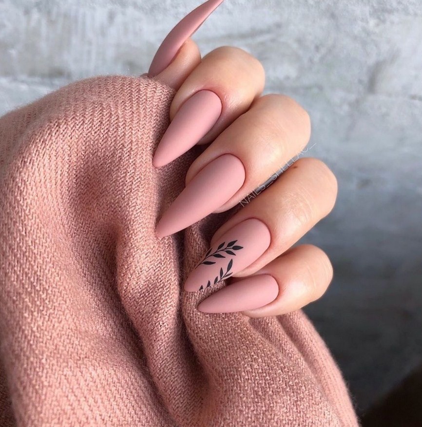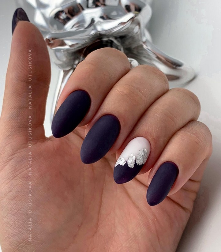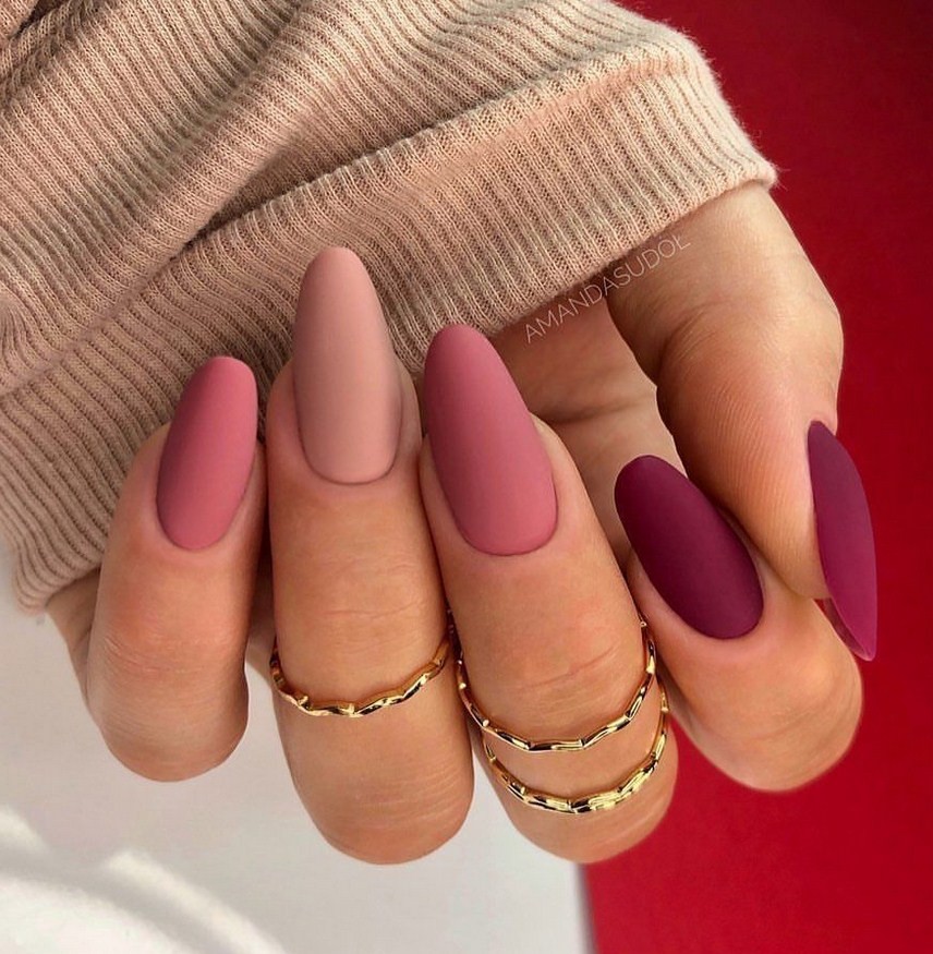 Миндаль. Такая форма сама по себе считается очень стильной, нежной и женственной. Все эти качества матированная основа только подчеркнёт и усилит. Идеальное решение – тёмные оттенки лака, которые выглядят максимально эффектно.
