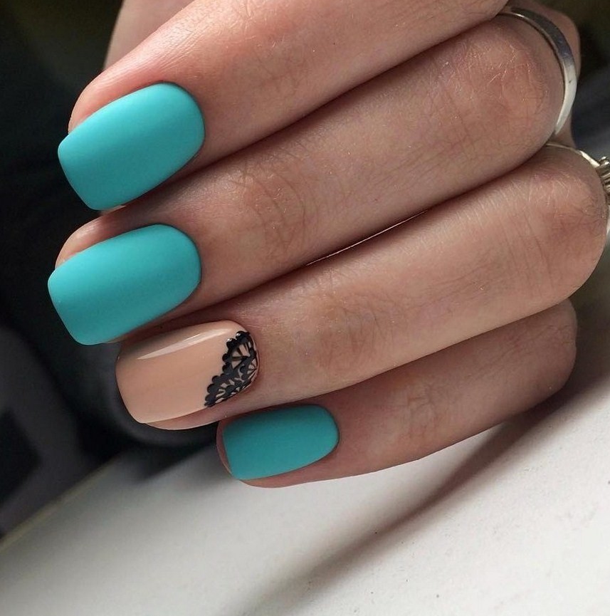Часто матовая текстура в маникюре используется не полностью на все ногти, как «изюминка» маникюра. Вот примеры: