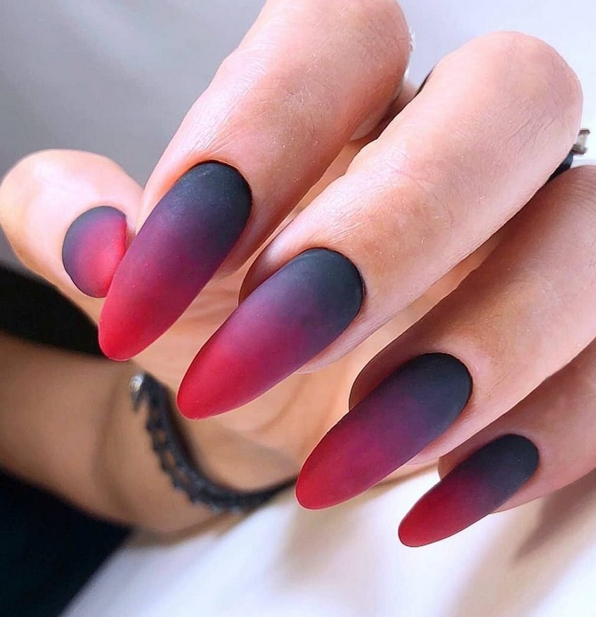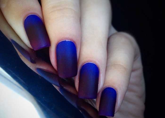 Роскошный маникюр с плавным переходом от одного цвета к другому замечательно смотрится не только в глянцевом исполнении, но и в матовом.