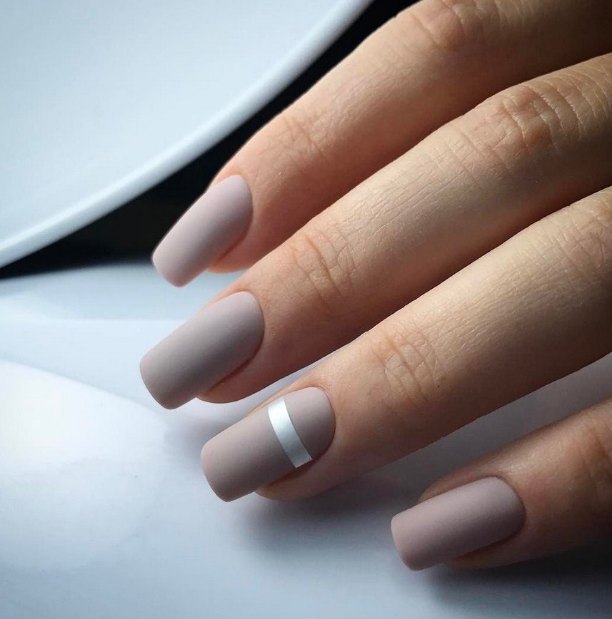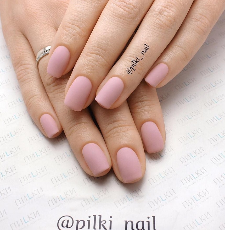 Даже без дополнительного декора матовый маникюр смотрится стильно. При этом девушка выглядит строгой, как раз то, что нужно в официально-деловом стиле. Во время вечеринок это подчеркнёт серьёзность девушки. Наносится матовый шеллак просто, возможно применение нескольких техник. Даже с глянцевым лаком создают матовое покрытие.