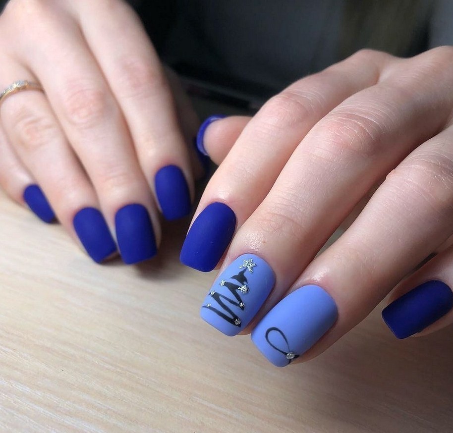 Синий. Тёмный или яркий синий цвет – решение для смелых женщин, которые не ограничены рамками дресс-кода. Но приглушенные варианты с матированием вполне соответствуют деловому образу, выглядят стильно и лаконично. Для яркого праздника стоит выбрать королевский синий в комбинации с золотым.