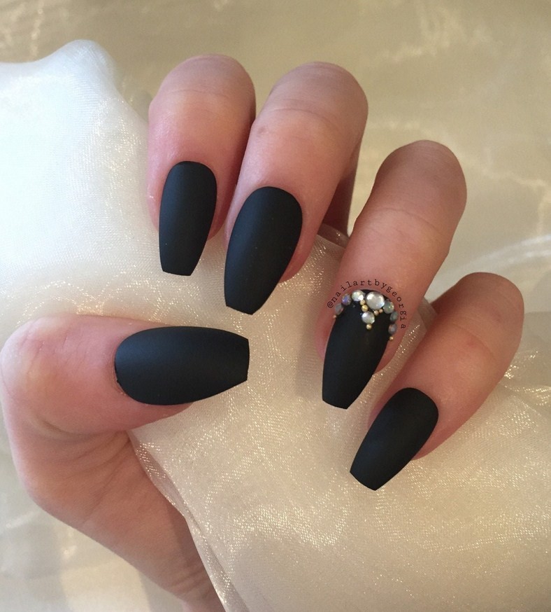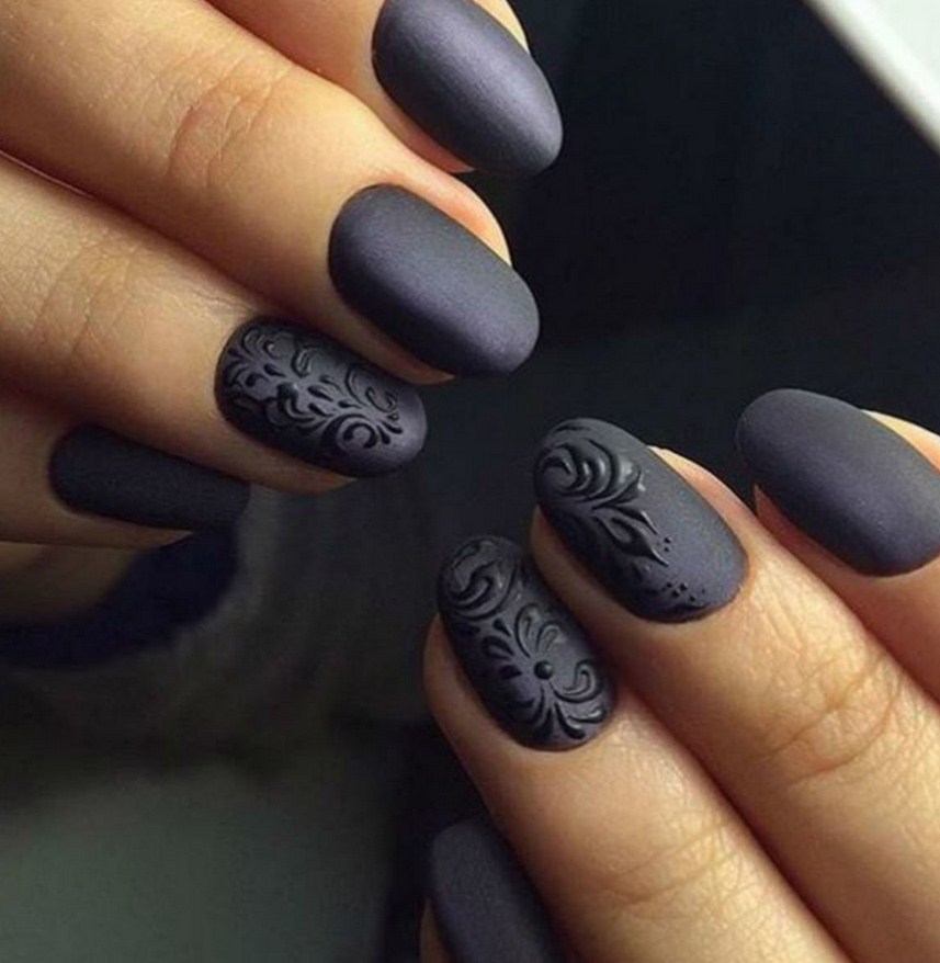 Этой осенью вы обязательно должны попробовать сделать черный матовый маникюр. Для него потребуется только качественный темный лак.