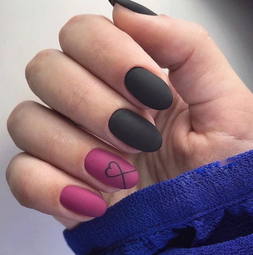 Матовый маникюр с глянцевым узором