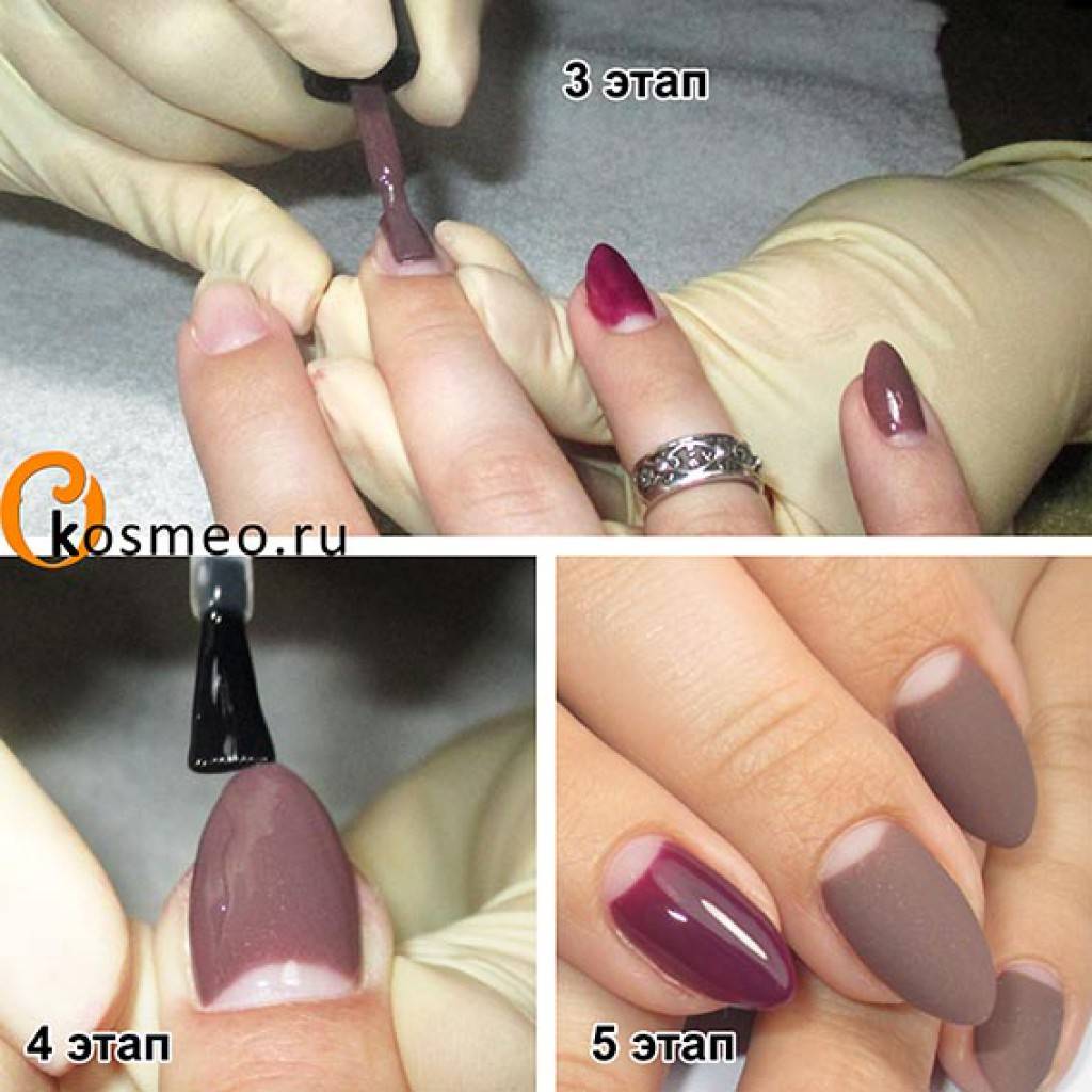 Существует четыре варианта выполнения матового маникюра на основе гель-лака.