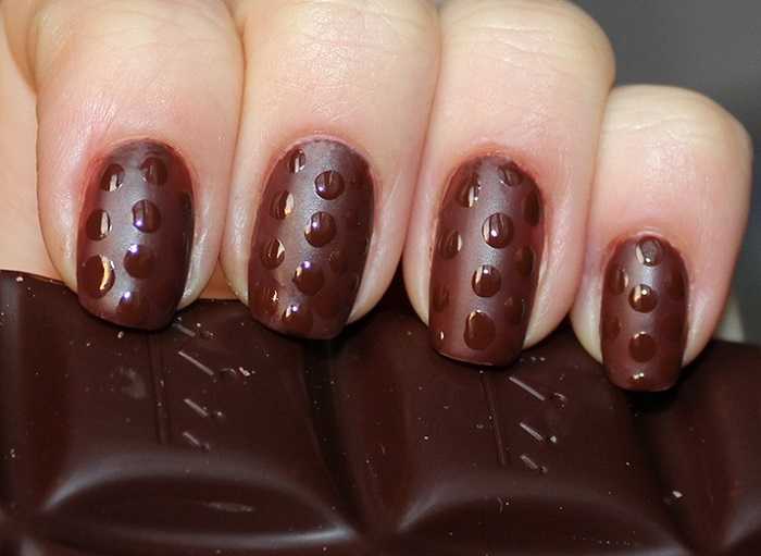 Если добавить на матовое покрытие несколько капель глянцевого лака, то получится эффект дождя. Удобнее всего этот маникюр выполнять дотсом – металлической палочкой с шариком на конце.