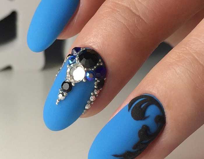 Маникюр со стразами или камнями, подчеркивает игру света, создавая впечатляющий эффект.