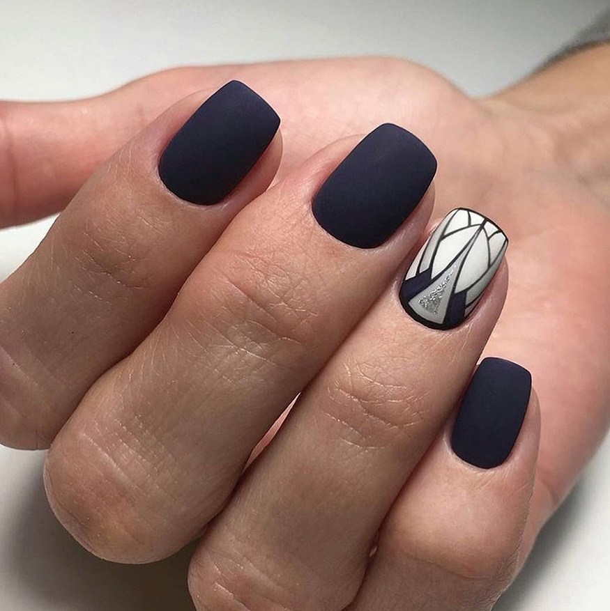 Квадрат. Такая форма – выбор смелых, решительных женщин и девушек. Матирование придаст дополнительную ухоженность, аккуратный вид. Лучшие способы дизайна – геометрические рисунки, выделение кончика контрастным или глянцевым лаком.