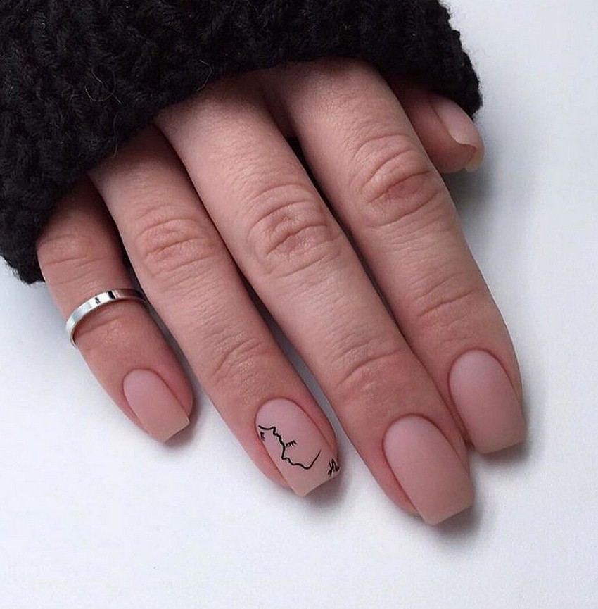 Короткие матированные ногти. Оттенок покрытия может быть любым. Ограничения есть только в типе и количестве декора – он должен быть минималистичным и не перегружать общий нейл-дизайн.