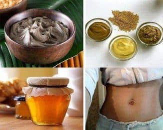 Эффективно бороться с лишними сантиметрами на талии и бедрах поможет состав с добавлением лимона. Рецепт приготовления такой: смешивают 2 ложки сухой горчицы и 2 чайных ложечки сахара, выжимают в смесь сок из половинки лимона, всыпают немного соли. Затем в состав доливают немного горячей воды и перемешивают до сметанообразной консистенции. Смесь плотно закрывают в стеклянной емкости и дают настояться в темном месте около суток. Затем добавляют 2 ложки меда и ложку жирных сливок, перемешивают и наносят на места жировых отложений. Кроме сжигания жира этот рецепт имеет еще один замечательный эффект – убирает растяжки.
