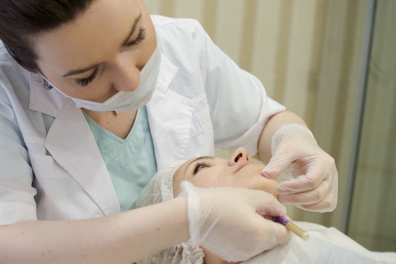 - Специалист делает разметки для того, чтобы определить наиболее подходящие места для введения биогеля.