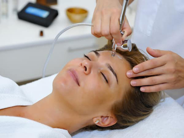 - Кислородной. Действие направляется на насыщение кожи кислородом, который подается в клетки кожи под давлением. Данная процедура направлена на улучшение цвета лица, увлажнение кожи и уменьшение пигментации.