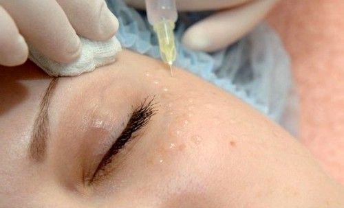 - Кожа вокруг глаз протирается сначала дезинфицирующим раствором, затем — анестетиком для обезболивания. Можете не бояться: он достаточно сильный, поэтому во время процедуры вы ничего не почувствуете. Однако на следующий день, когда ткани будут «отходить» от инъекций, возможны болевые ощущения.