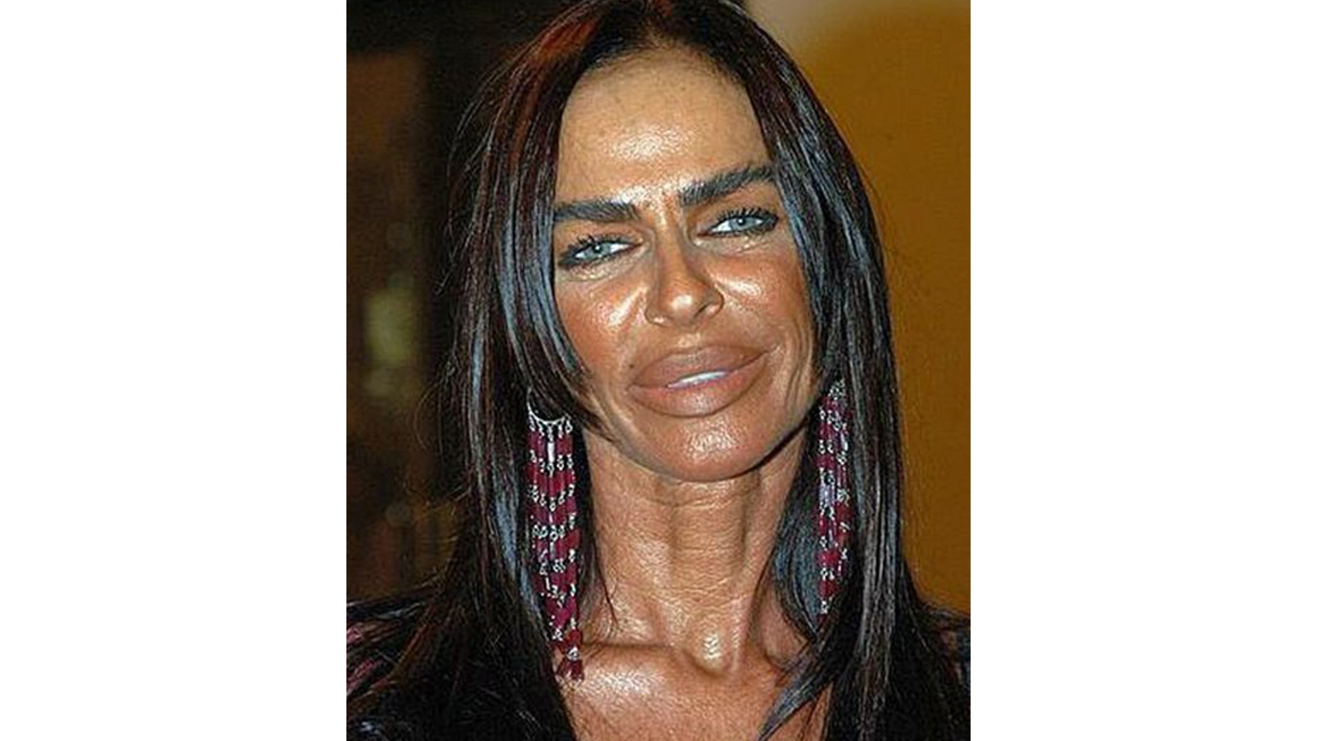 Подтяжка лица, имплантаты в области щёк, реконструкция носа, а также заметное увеличение губ – всё это не только не украсило пожилую женщину, а, напротив, кардинально испортило её природную красоту.