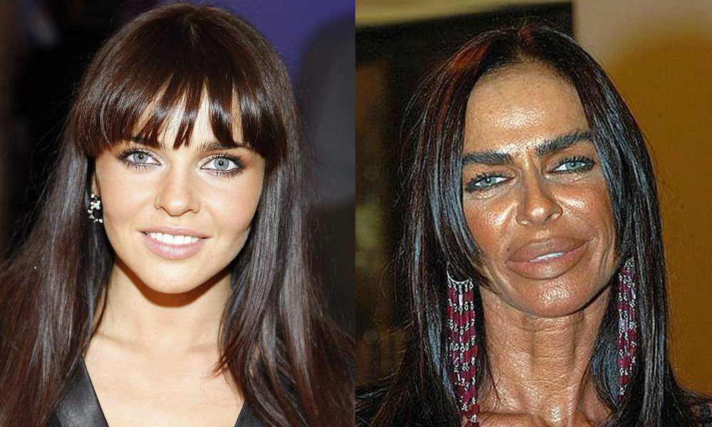 Из рекордсменов и одновременно жертв пластики в России непременно следует упомянуть голосистую певицу с эпатажной внешностью. После замужества и рождения дочери Распутина решила заняться основательной реконструкцией своего физического облика – благо богатый супруг денег не жалел. В результате Маша получила бюст фантастических размеров, такие же губы и радикально изменившееся лицо. Певица решила попробовать все сразу: накачала губы, изменила форму носа и подбородка, разрез глаз, сделала себе выступающие скулы. Однако результат никого, кроме самой знаменитости, не радует. Грубые черты лица в сочетании с безграничной любовью Распутиной к косметике и уникальной мимикой при детальном рассматривании способны довести до нервного срыва.