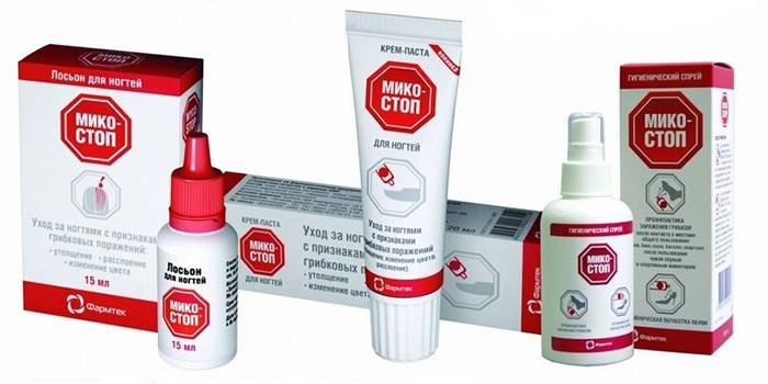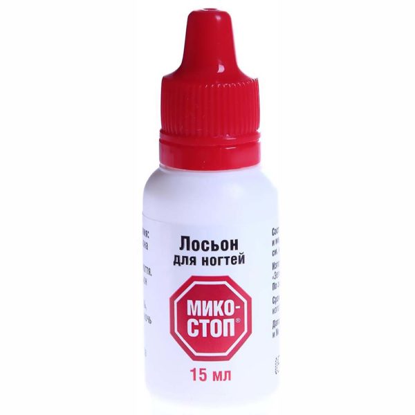 Для защиты и восстановления поврежденного ногтя предназначен лосьон Микостоп. Средство эффективно при площади пораженной зоны, занимающей менее половины поверхности ногтевой пластины. В состав лосьона входят органические кислоты. Проникая в толщу ногтя, активные компоненты снижают уровень pH и создают кислую среду, которая неблагоприятна для жизнедеятельности грибков. Данный механизм предотвращает распространение заболевания на здоровые участки. Лосьон содержит витамин PP, который способствует росту здорового ногтя.
