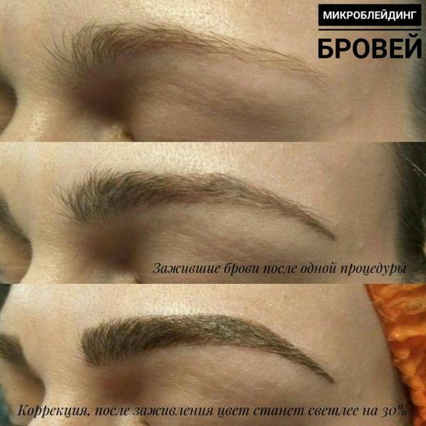 - если в той области бровей, где необходима коррекция, жирная кожа и расширенные поры, микроблейдинг просто не ляжет – предложат стандартный татуаж;