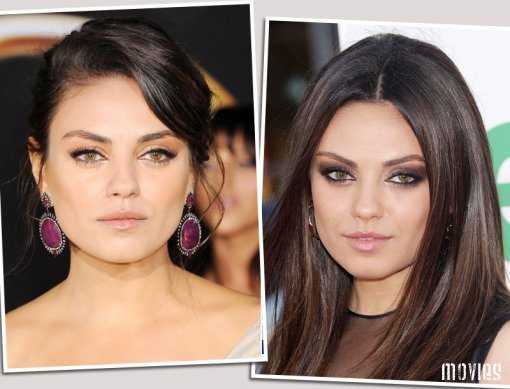 - Макияж, как у Милы Кунис, предусматривает нанесение теней шоколадного оттенка на складку, внешний уголок глаза и немного выше подвижного века.