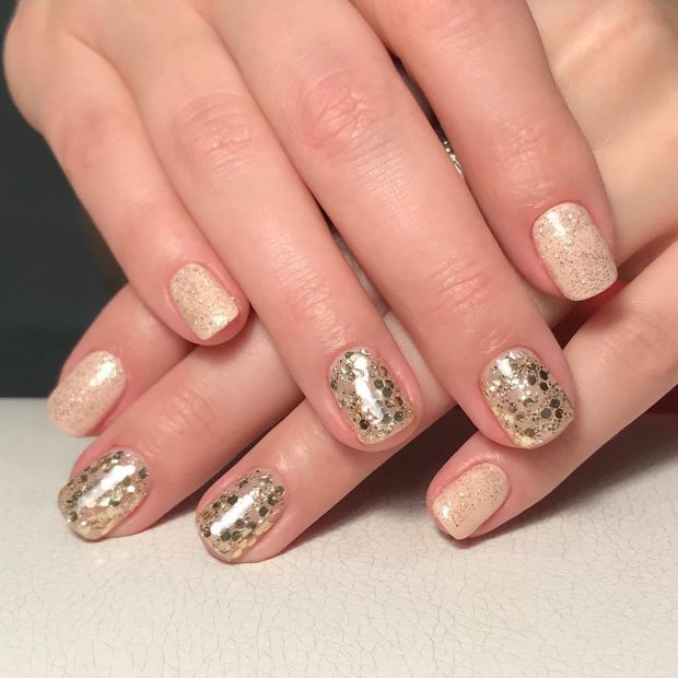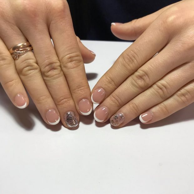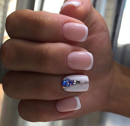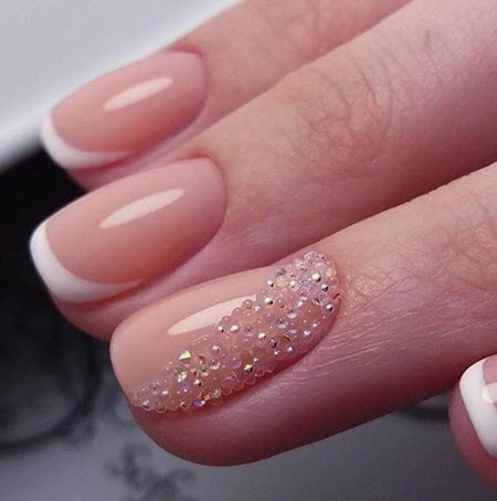Стразы и блестки – стразы, в особенности блёстки уместны только на светлых тонах, телесных или на френче. Украшайте несколько ногтей, но следите за количеством блеска, поскольку он может утяжелить маникюр.