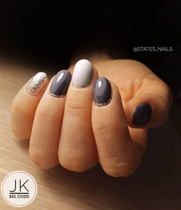 декор из фольги, втирки или лаконичных страз, а также растяжка с использованием блесток;