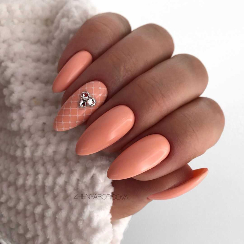 Оптимальный вариант длины для нюдового маникюра. Допустима и средняя длина. Именно на такой базе получится раскрыть всю глубину выбранного цвета. Можно воспользоваться случаем и сделать модный градиент, растянув цвет от светлого до практически прозрачного.