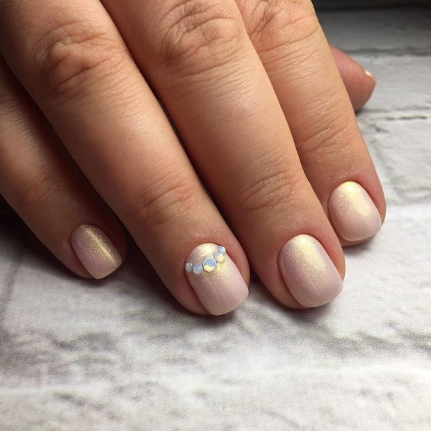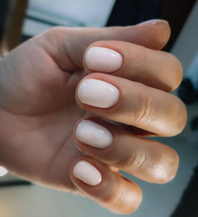 Маникюр на коротких ноготках, выполненный в мягкой, неброской цветовой гамме с декоративными элементами либо без них — это беспроигрышный вариант, который будет уместен в любой ситуации: от офисных будней до свадебного банкета.