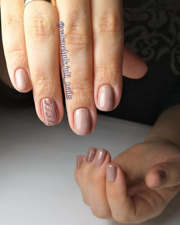 При этом важно учитывать уместность и соразмерность того или иного декора относительно небольшому размеру короткого ногтя. Среди удачных вариантов дизайна нежного короткого маникюра можно выделить следующие: нюдовый оттенок базового глянцевого или матового покрытия в изысканном сочетании с минималистичным монохромным рисунком на одном или нескольких ногтях; геометрические узоры и рисунки контрастной гель-краской на нежной основе гель-лака; оригинальная идея под названием «негативное пространство»; мраморный маникюр, «кошачий глаз» и многие другие креативные варианты