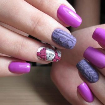 Декор в виде рисунка с забавными мишками будет лучше виден на двух типах пигментированных гель-лаков – это гибридные «нейл» -продукты с матовой и глянцевой фактурой. Если хочется более модного маникюра, стоит остановить свой выбор именно на матовых пигментах. Сегодня они могут быть вельветовыми, велюровыми, бархатными и сатиновыми. Такие покрытия смотрятся довольно дорого и эффектно.