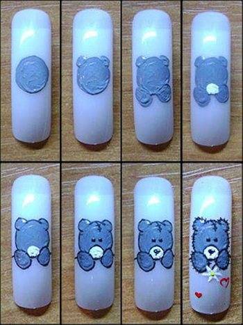 Как нарисовать медвежонка на ногтях: пошаговая фотоинструкция