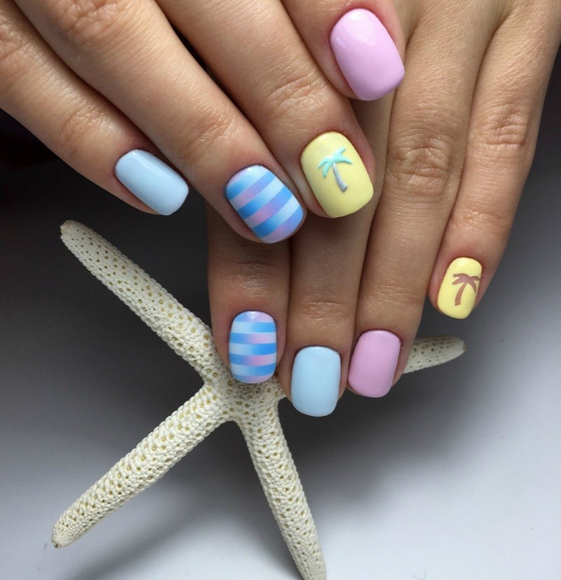 При создании летнего маникюра стоит в первую очередь уделить внимание цветовой гамме. Именно она играет важную роль в дизайне ноготков