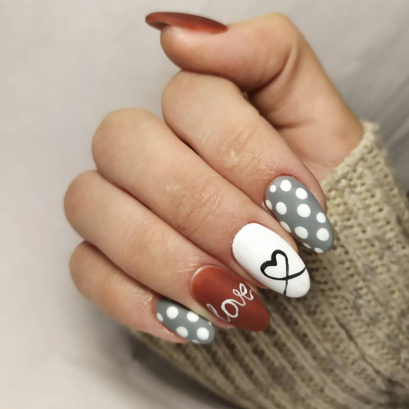 Для рисунков уже не так актуально выделять лишь один (безымянный) ноготь. Одним из fashion-трендов 2021 года будут рисунки, рассредоточенные по нескольким ногтям. Это могут быть ногти больших пальцев разных рук, либо два или три пальца на одной руке.