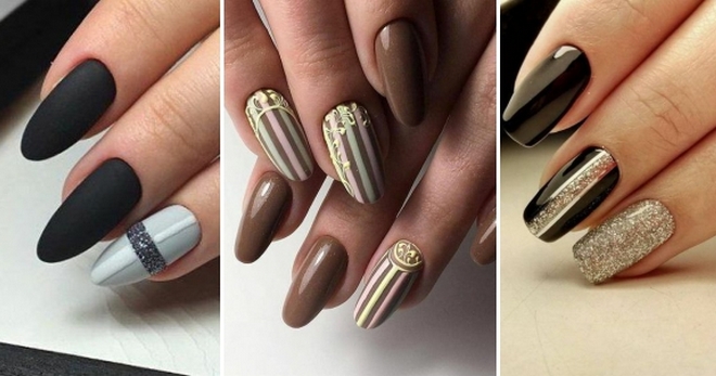 Также модными цветами в маникюре будут серые оттенки, коричнево-кофейные, белый(бриллиантовый), черный, глубокий темно-синий, лимонный, зеленый (среди этого цвета будут в тренде как глубокие бутылочные оттенки, так и более освежающие ментоловые, цитрусовые).