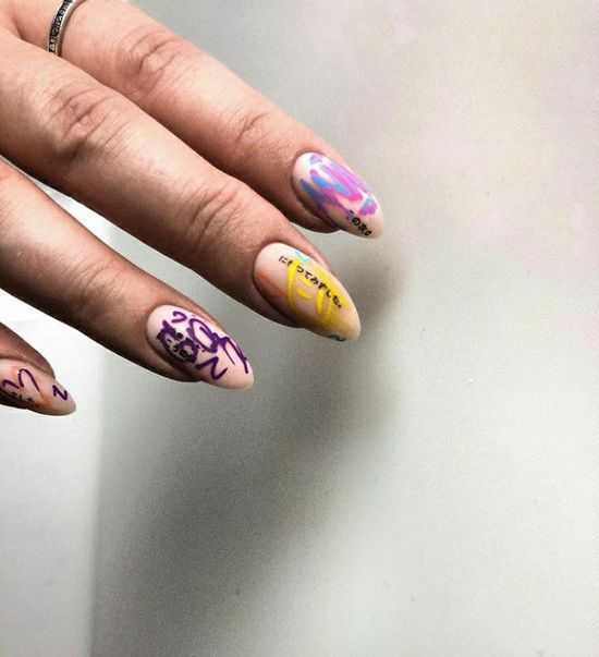 Такой дизайн вошел в моду уже давно. Он круто смотрится в любой сезон, лето — не исключение. Особенно популярен данный маникюр среди подростков и молодежи. Его легко выполнить даже дома, результат удивит любого.