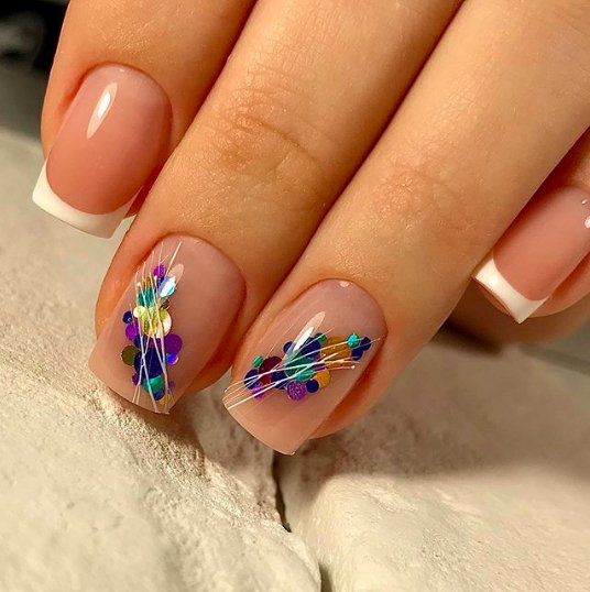 С помощью ярких конфетти можно создать праздник на своих ногтях. Такой дизайн отлично подойдет к летнему платью и шляпе. Отправляться в путешествие лучше только с таким маникюром.