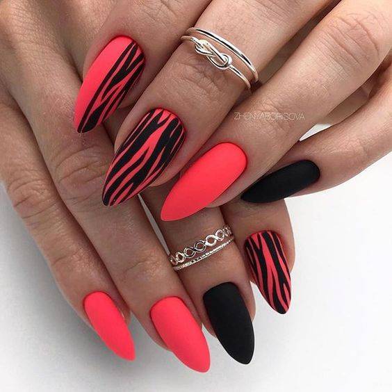 - Красный ассоциируется со страстью, обольщением и опасностью. Он подойдет ногтям любой формы и длины.