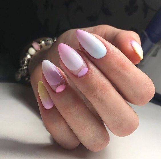 Длинные и сужающиеся к элегантному концу, миндалевидные ногти имеют сексуальную и гламурную форму. Свое название они получили из-за формы миндального ореха. Это универсальная форма, которую можно выбирать для любого случая. Смешайте яркие тона, чтобы создать игривый и веселый летний дизайн.