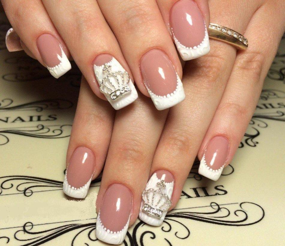 Королевские лунки с акцентом на один ноготь — это «изюминка» свадебного образа или вечернего наряда с белым платьем.