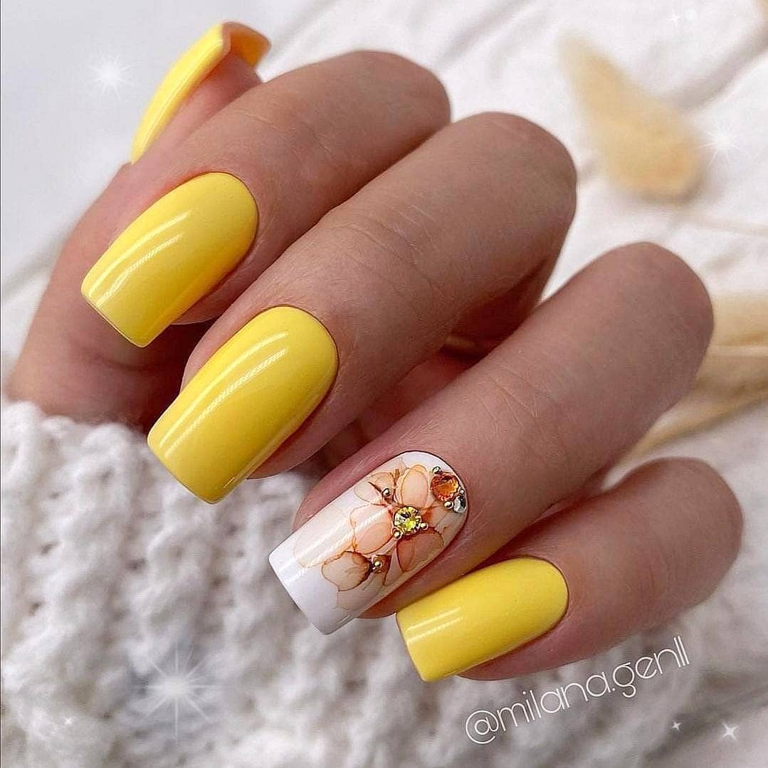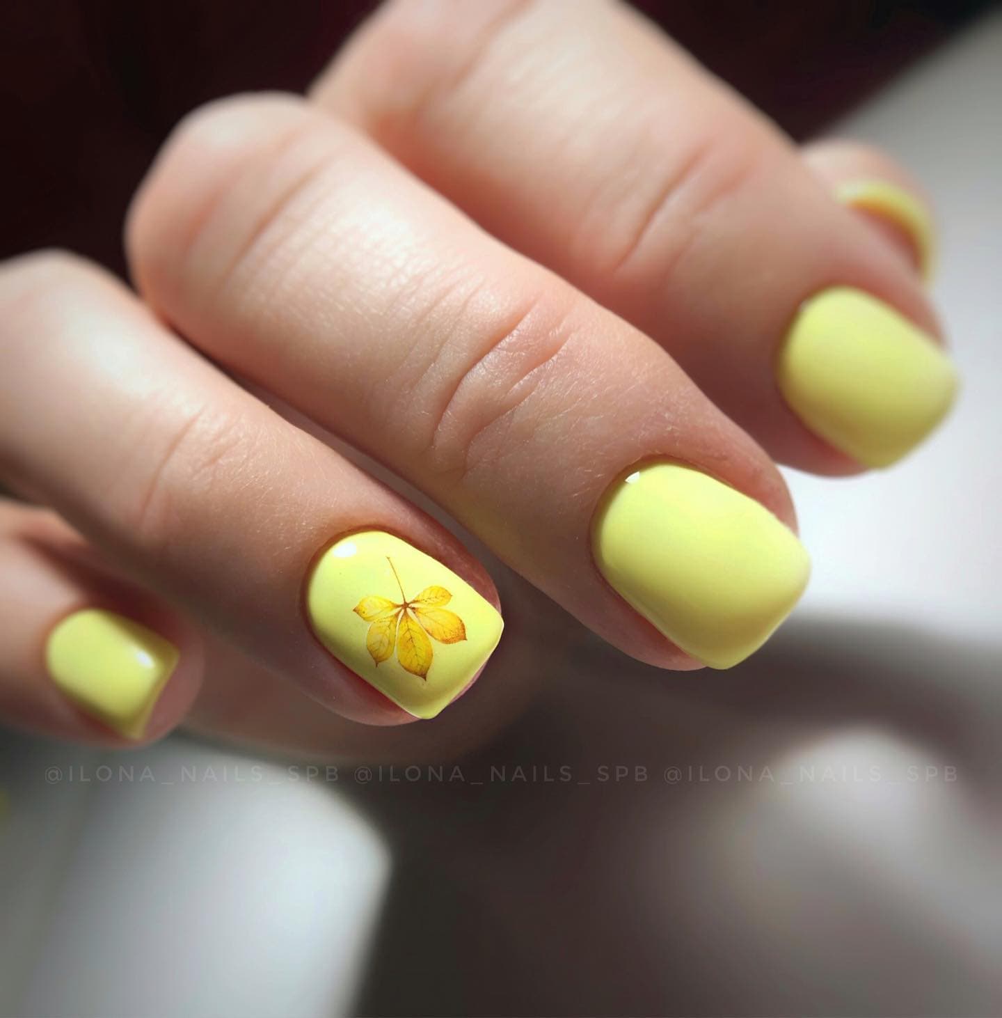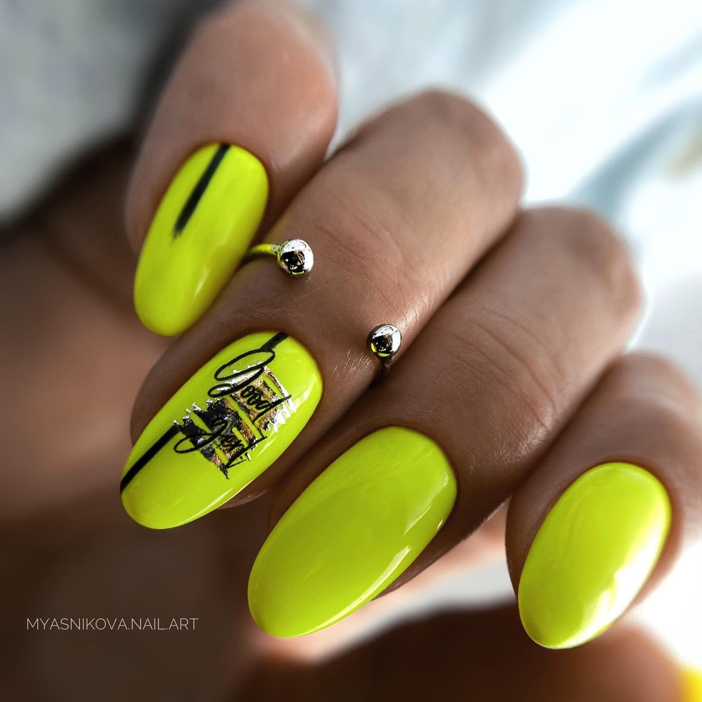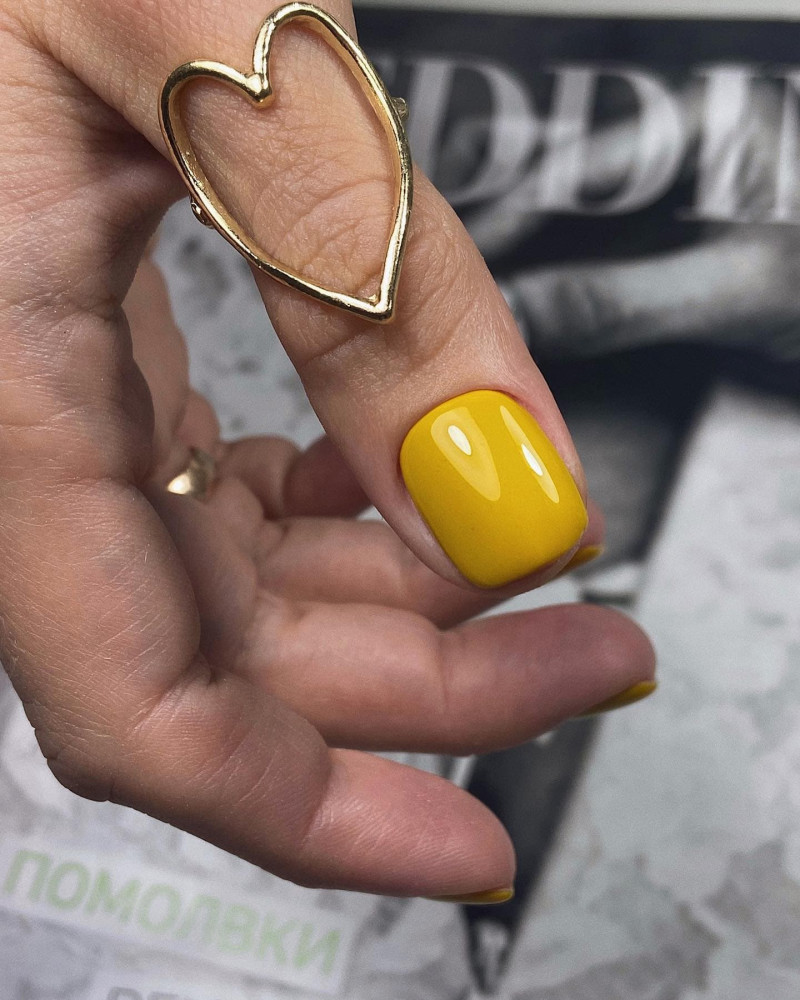 Если тебе посчастливилось увидеть у мастера маникюра этот цвет гель-лака, обязательно подумай о том, чтобы сделать нейл-арт с использованием такого солнечного оттенка. Выбирать однотонный маникюр не обязательно — добиться яркого эффекта можно даже в том случае, когда желтый используется только на какой-то части ногтей. Мы это успешно доказываем в блоках ниже, поэтому если ты хочешь увидеть идеи маникюра с желтым гель лаком — читай дальше.