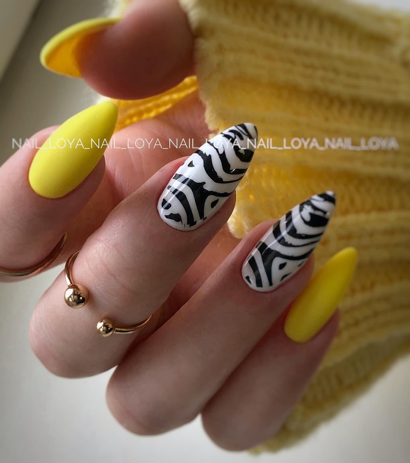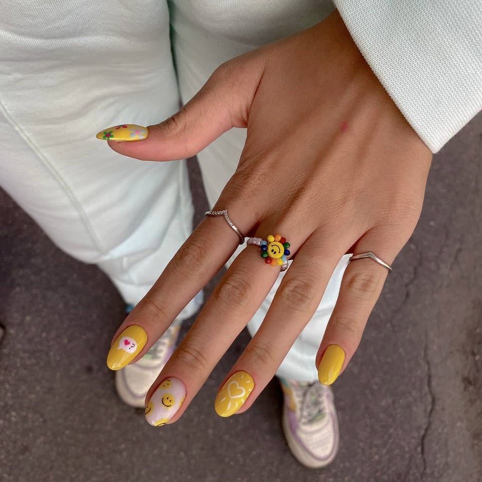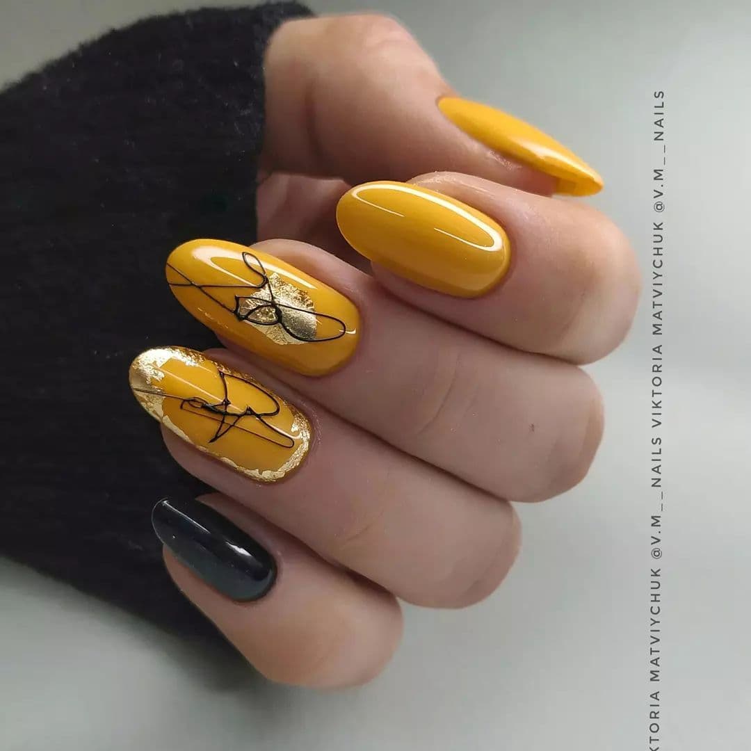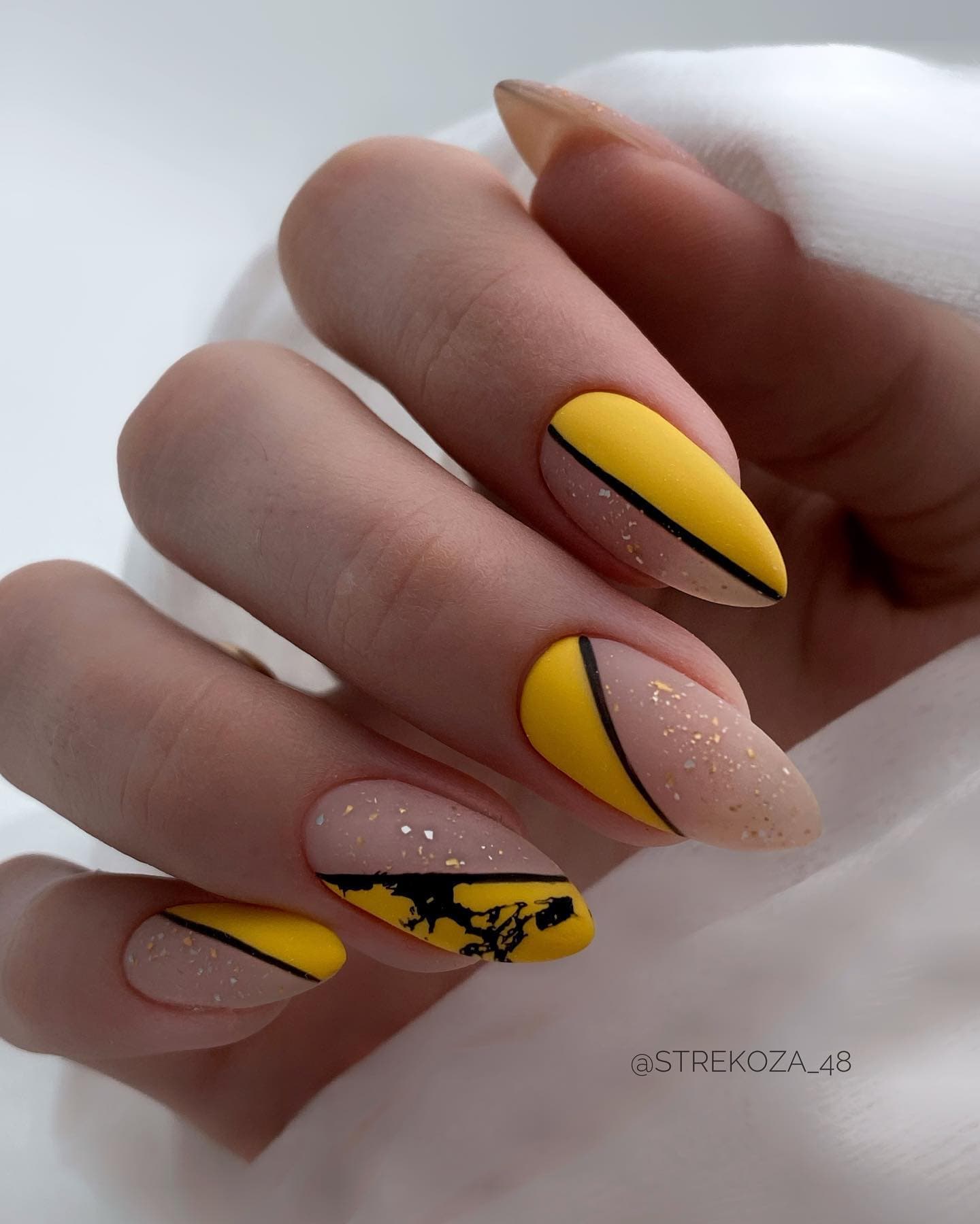 Если тебе посчастливилось увидеть у мастера маникюра этот цвет гель-лака, обязательно подумай о том, чтобы сделать нейл-арт с использованием такого солнечного оттенка. Выбирать однотонный маникюр не обязательно — добиться яркого эффекта можно даже в том случае, когда желтый используется только на какой-то части ногтей. Мы это успешно доказываем в блоках ниже, поэтому если ты хочешь увидеть идеи маникюра с желтым гель лаком — читай дальше.