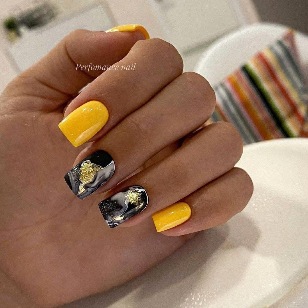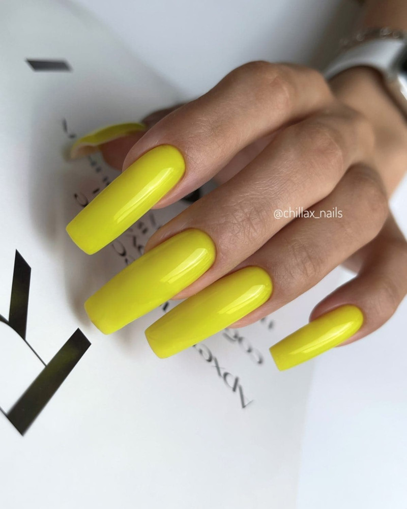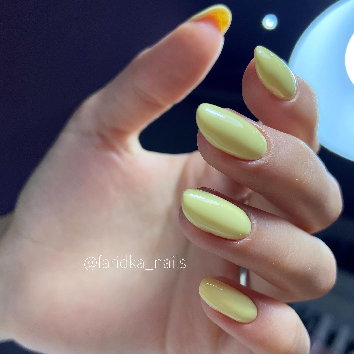- Один из самых ярких и жизнерадостных летних цветов — желтый. Каждый летний сезон невозможен без желтого лака. В 2023 году в моде более приглушенный оттенок желтого.