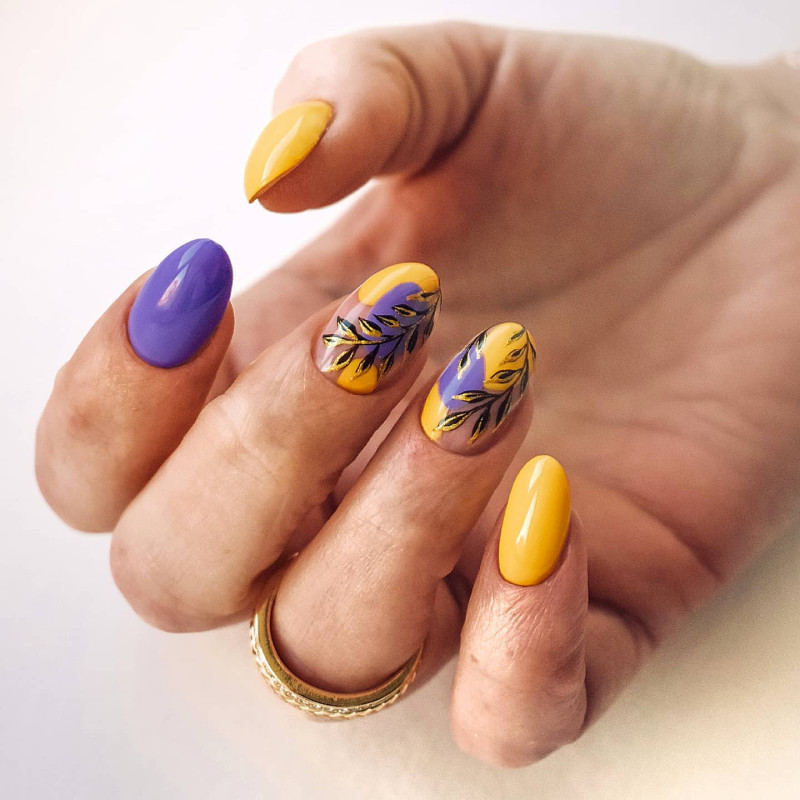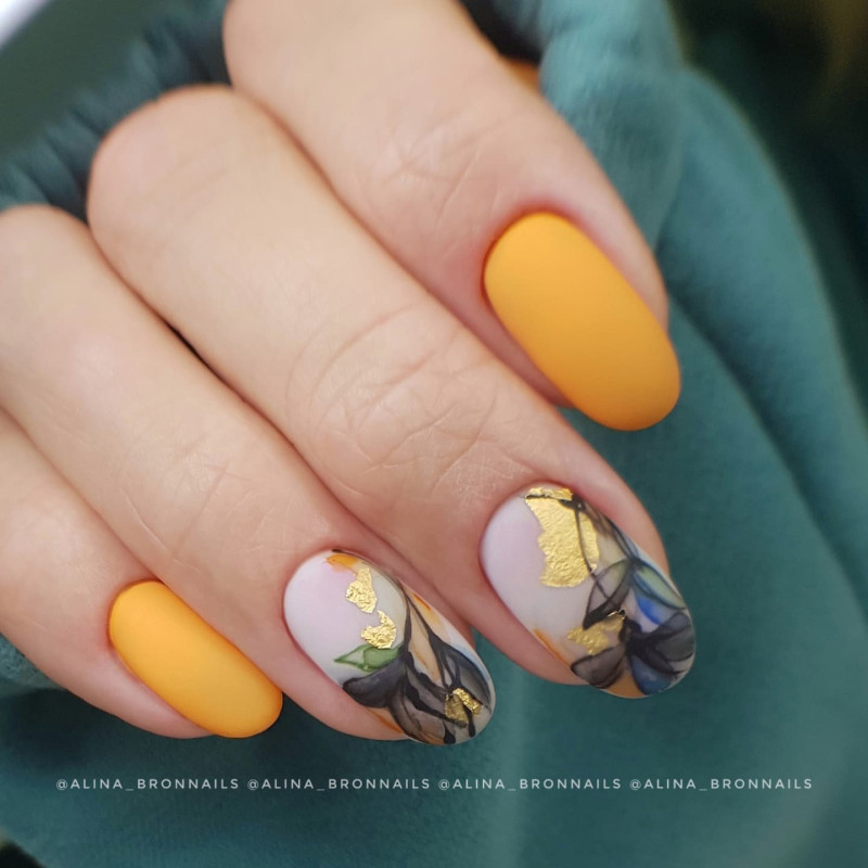 Для рисунков уже не так актуально выделять лишь один (безымянный) ноготь. Одним из fashion-трендов 2021 года будут рисунки, рассредоточенные по нескольким ногтям. Это могут быть ногти больших пальцев разных рук, либо два или три пальца на одной руке.