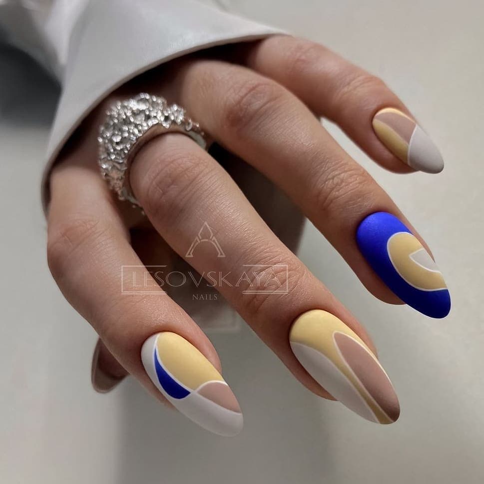 Длинные и сужающиеся к элегантному концу, миндалевидные ногти имеют сексуальную и гламурную форму. Свое название они получили из-за формы миндального ореха. Это универсальная форма, которую можно выбирать для любого случая. Смешайте яркие тона, чтобы создать игривый и веселый летний дизайн.
