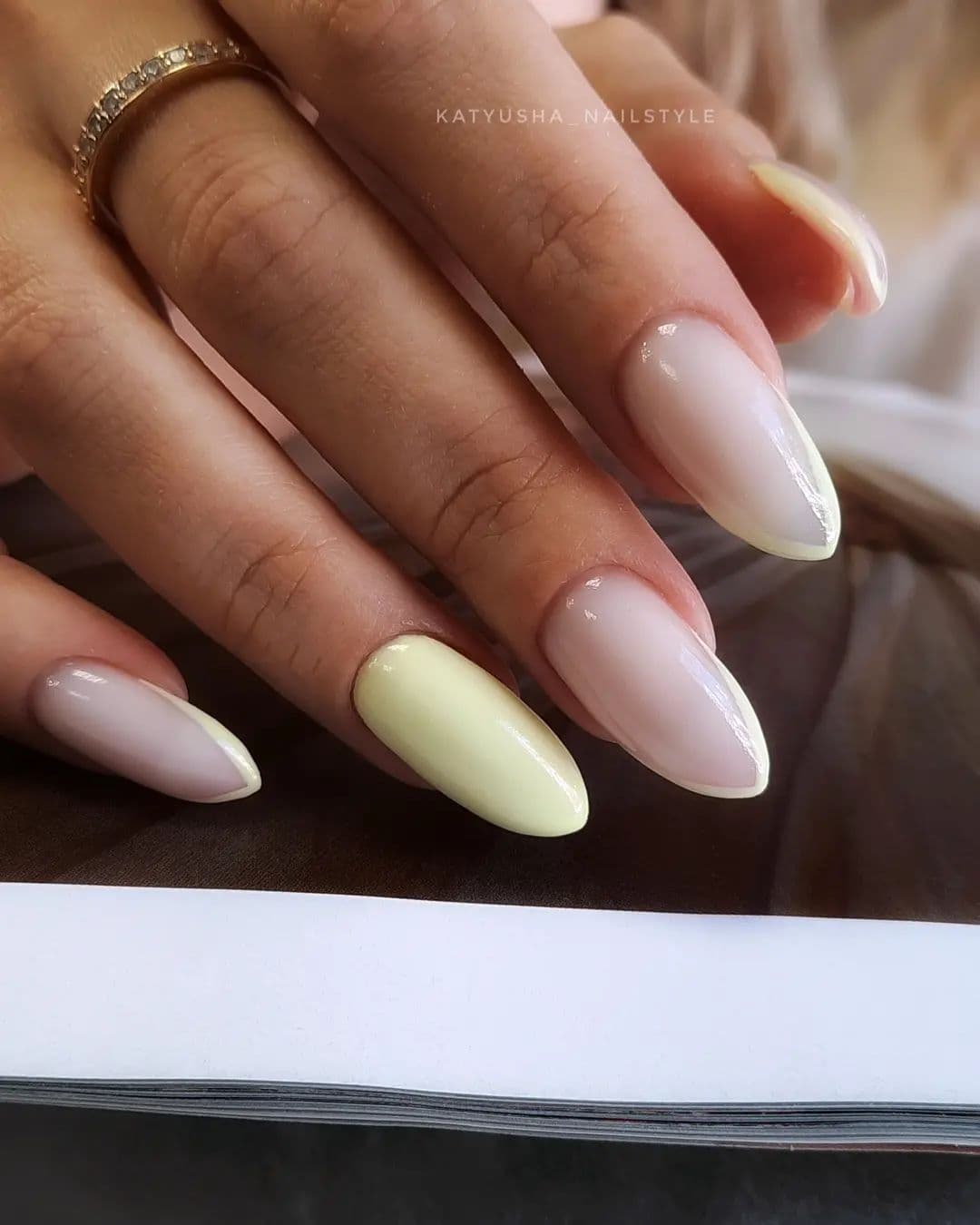 Всем, кто только знакомится с желтым цветом и начинает вписывать его в свой гардероб, аксессуары и маникюр, мы рекомендуем использовать именно пастельный оттенок. Он не вызовет лишних вопросов и не надоест через пару дней. В каком-то смысле, такой подтон — базовый, поэтому его можно без проблем внедрить практически в любой образ.
