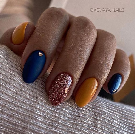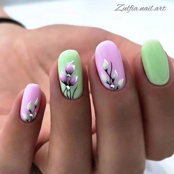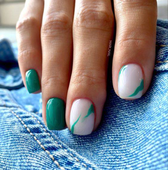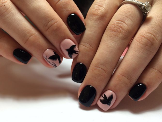 Это решение рискованное и одновременно смелое. Главное учесть цвета. Правильно подобранные оттенки и дизайн не испортят вид ногтей. Самый модный маникюр на сегодня, это сделать на разных руках «перепелиное яйцо», а на остальных – всегда актуальное однотонное покрытие.