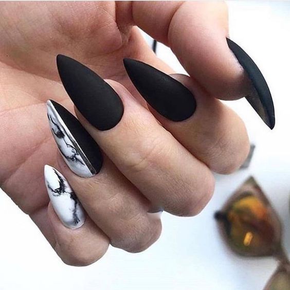 Заостренная, или как ее еще называют, миндалевидная форма ногтей, отлично подойдет для тех, кто обладает либо длинными, либо средней длины ногтями.
