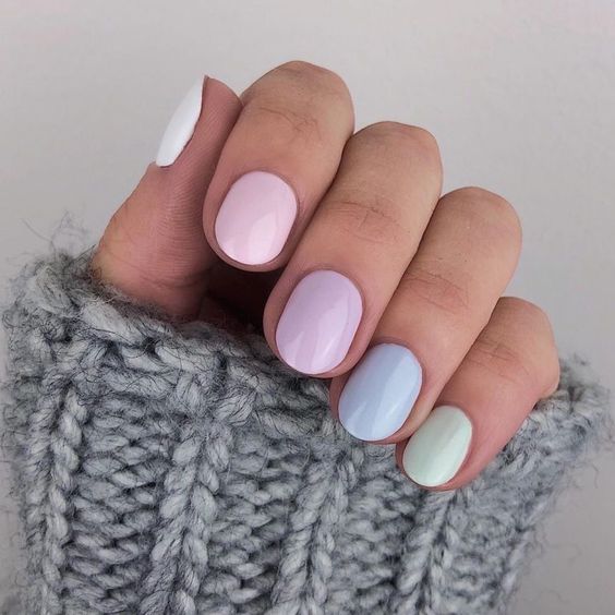 Стандартный вариант самого актуального ежедневного маникюра. Красивое сочетание получится из двух близких оттенков. Пастельная палитра будет гармонировать между собой. Яркие цвета со светлыми помогут сделать растяжку.