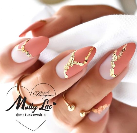 Кутикула в виде треугольника идеально смотрится с заостренной и овальной формой ногтей.