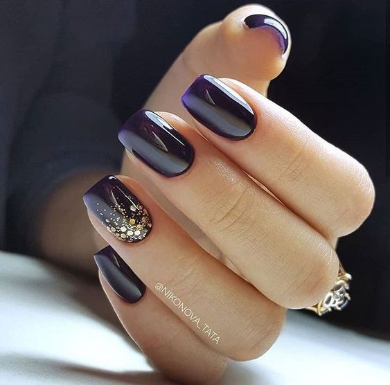 Используем темные цвета лаков, особенно хорошо будут смотреться черный, темно-коричневый, темно-синий, бордовые, сливовые цвета.
