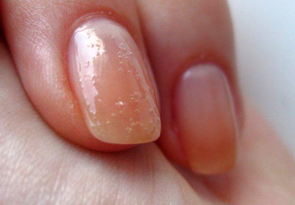 - Влажные ногти — это происходит, когда перед маникюром за два часа были произведены какие-либо водные процедуры или произошел контакт с водой. Ногти впитывают воду, после чего лак на них будет ложиться хуже и начинает пузыриться;