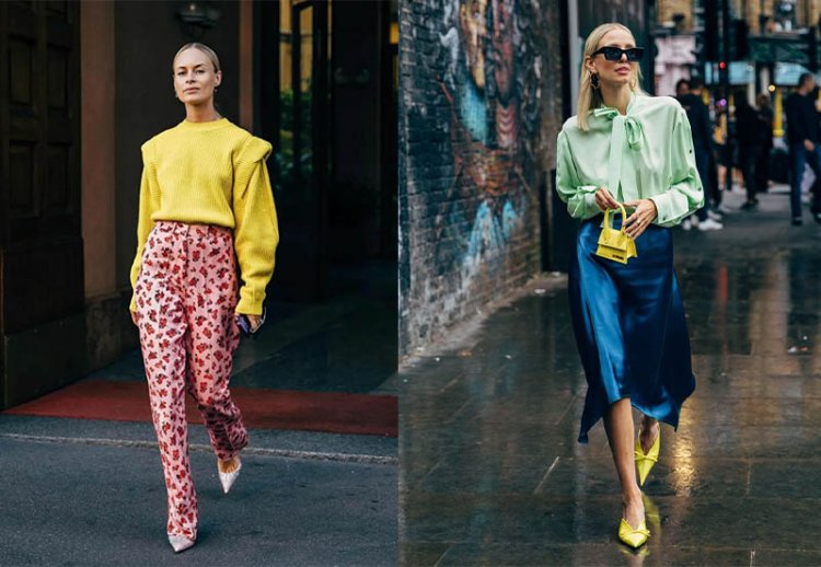 Используя цветовой круг, вы сможете подобрать гармоничные сочетания для модного оттенка: оранжевого, желтого, фуксии и т.д. Есть и более сложные схемы. Но тренироваться лучше на простых сочетаниях. Не перебирать с яркостью. Смотреть в сторону базы. Яркие цвета использовать в качестве акцентов. Исключение составляют случаи, когда чистоты цвета требует ваш природный колорит. Чем ярче внешность, тем проще с яркими оттенками. Вернее — таким девушкам они к лицу. Но с количеством цветов перебирать не стоит и им.