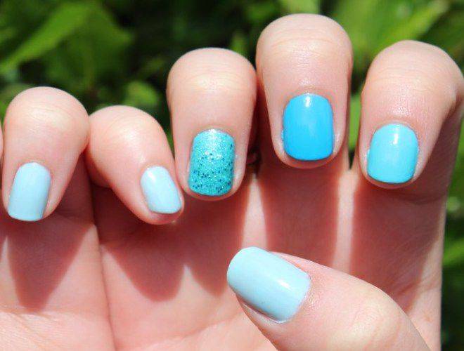 Для серого оттенка важно подобрать синий, черный, желтый. Если вы решили накрасить ногти голубым лаком, делайте акценты коричневым, синим и оранжевым. При оранжевом основном цвете сфокусируйтесь на голубом, фиолетовом, белом